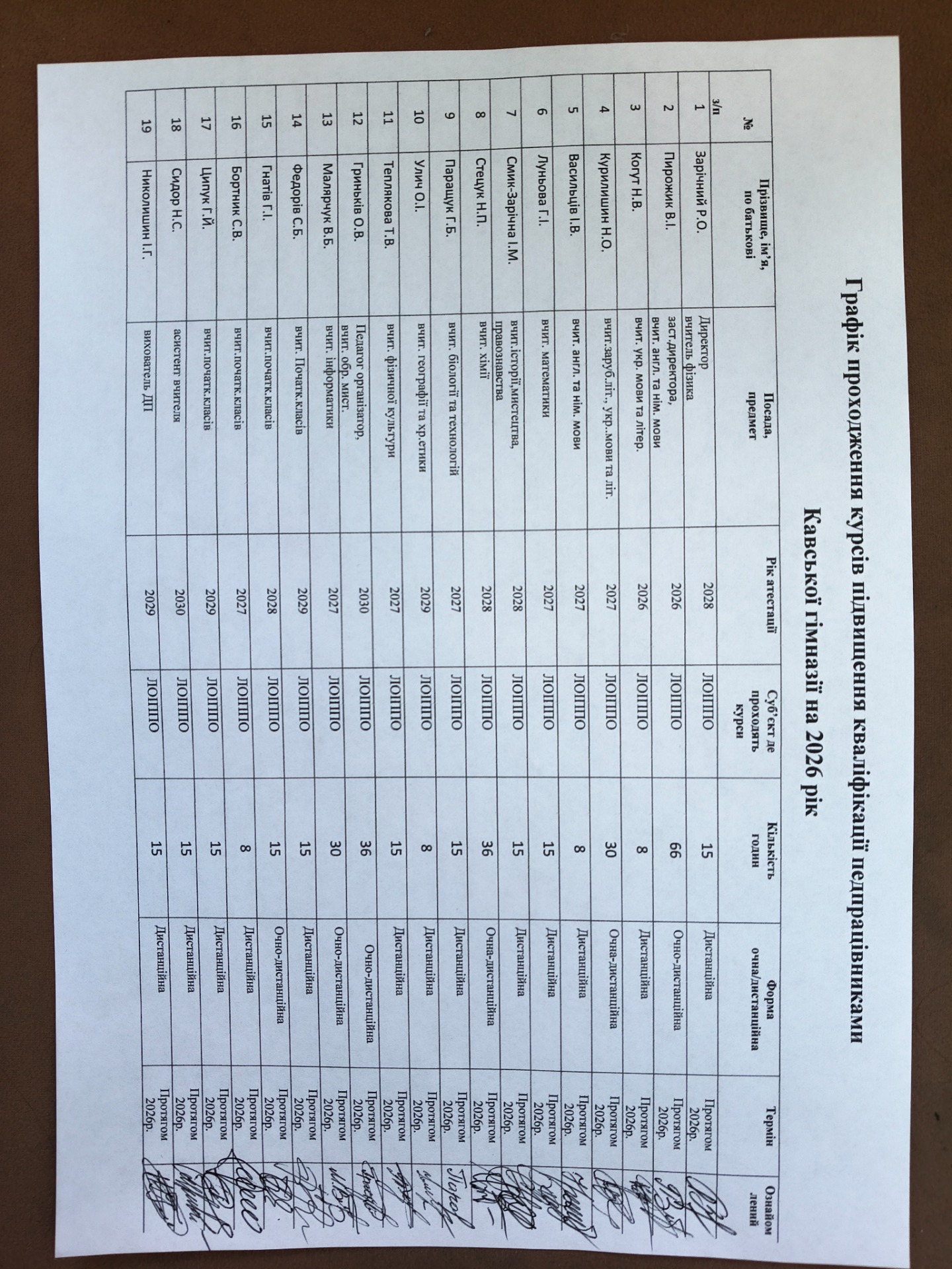 Річний план гімназії