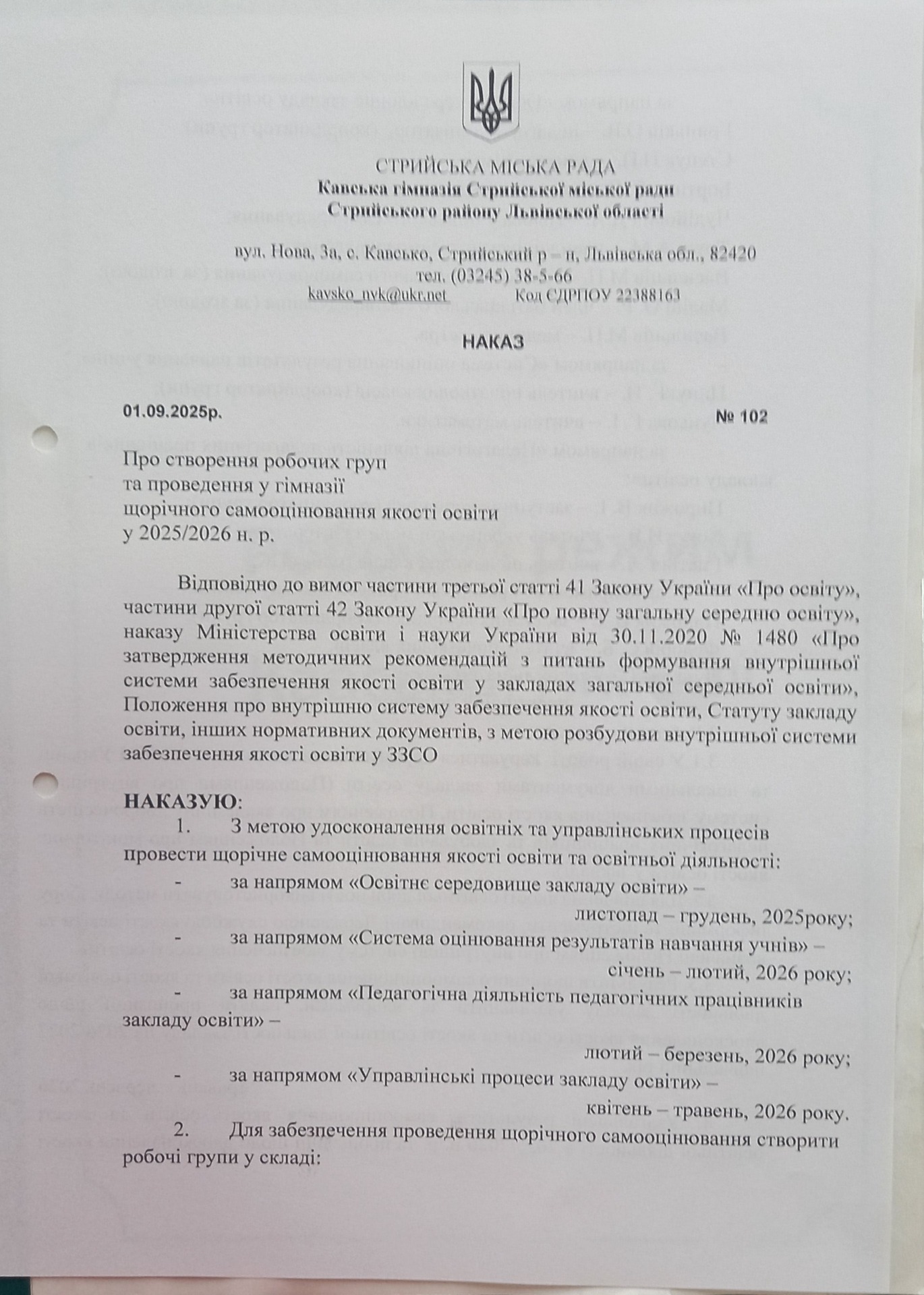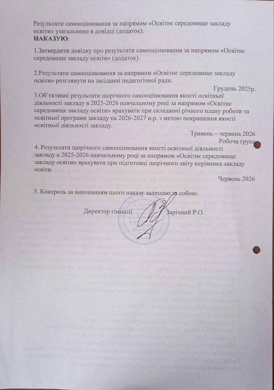 Структура та органи управління закладу освіти